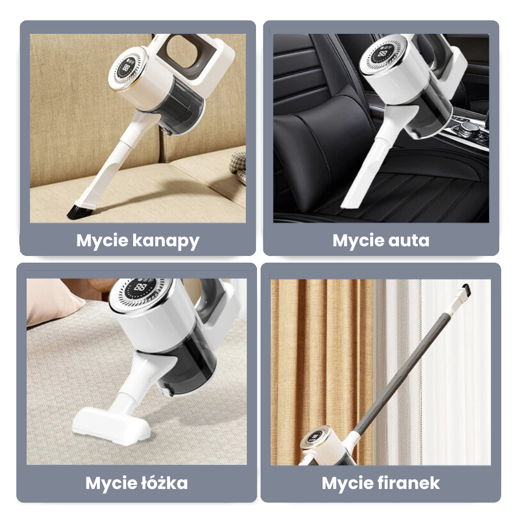Skutecznie eliminuje zabrudzenia z dywanów, płytek i paneli w jednym przejeździe.